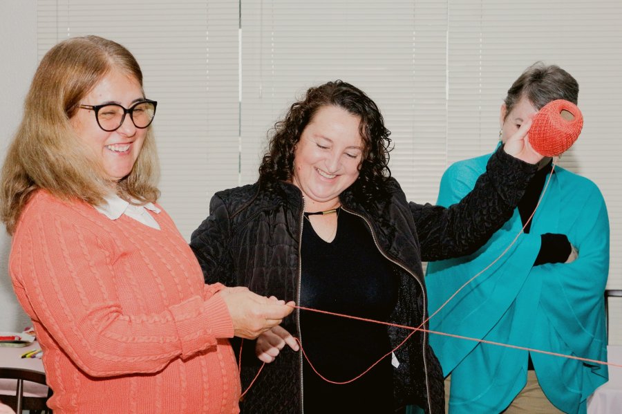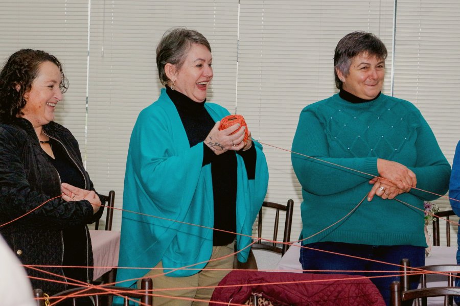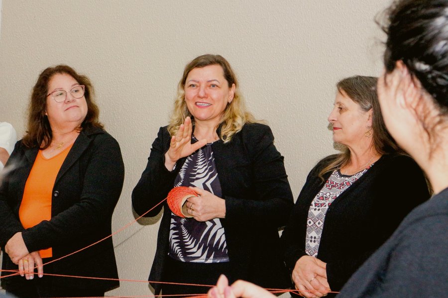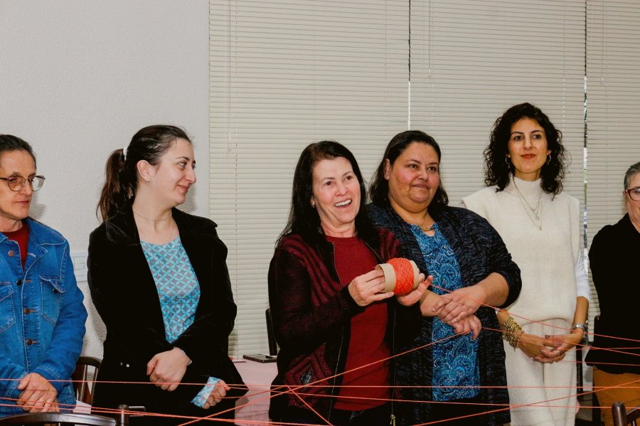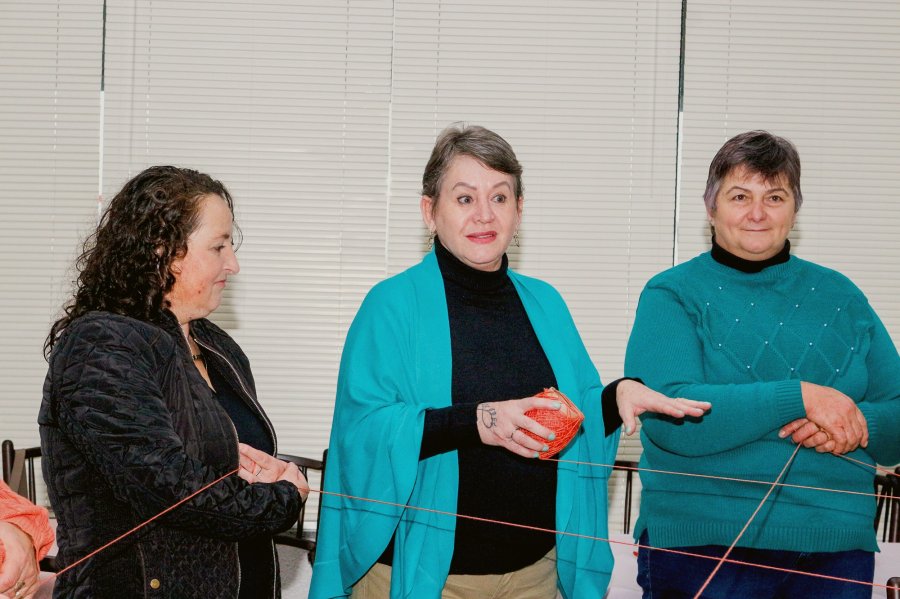 Cooperadas de Clevelândia realizando a dinâmica da teia