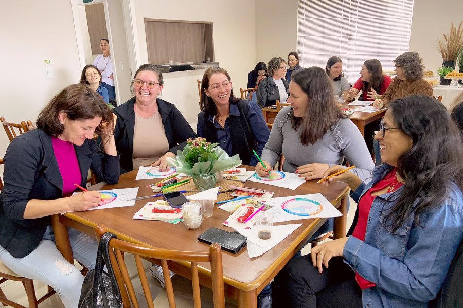 Além de aprender um pouco mais sobre o cooperativismo, durante o workshop as cooperadas participam de dinâmicas, como a teia e a roda da vida, que as instiga a olhar para si mesmas e analisar como está a vida, o relacionamento com a família e as pessoas do seu convívio pessoal e profissional.
