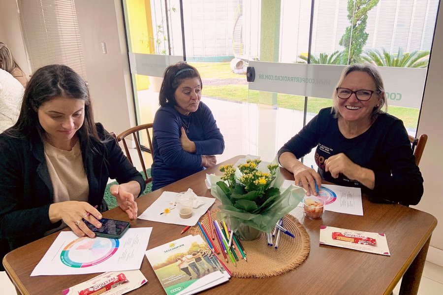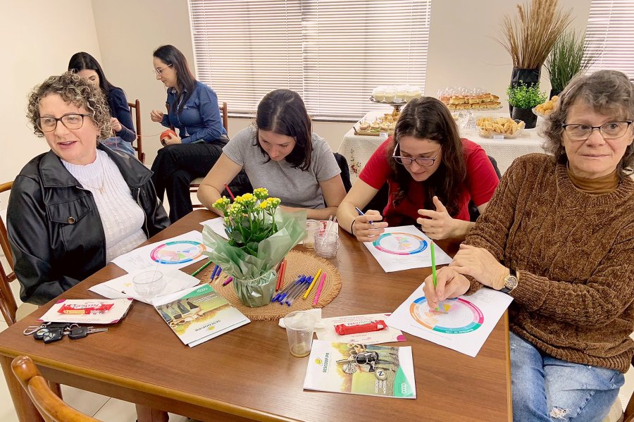 Na abordagem completa, passamos também uma pequena pincelada na questão, que é extremamente importante hoje, que é o autoconhecimento. E convidamos as cooperadas a analisar sobre como está a sua roda da vida. O que as faz feliz? O que elas podem fazer por si mesmas e o que elas podem buscar na Cooperativa, para que sejam uma pessoa, uma mulher, com mais participação, mais percepção de bem-estar, complementou Vera Regina.