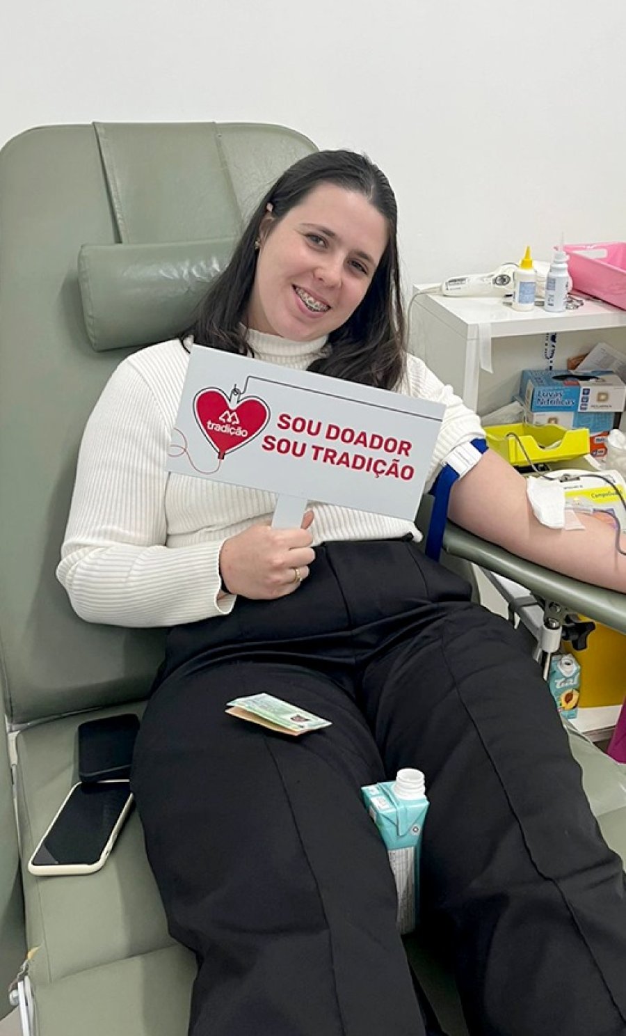 A auxiliar administrativa Jussara Bertazo, doadora há 20 anos, compartilhou sua história. Comecei aos 33 anos, motivada por uma necessidade familiar e nunca mais parei. Hoje, a doação faz parte da minha rotina e já consegui inspirar minha filha, que doa sangue desde os 20 anos, conta.