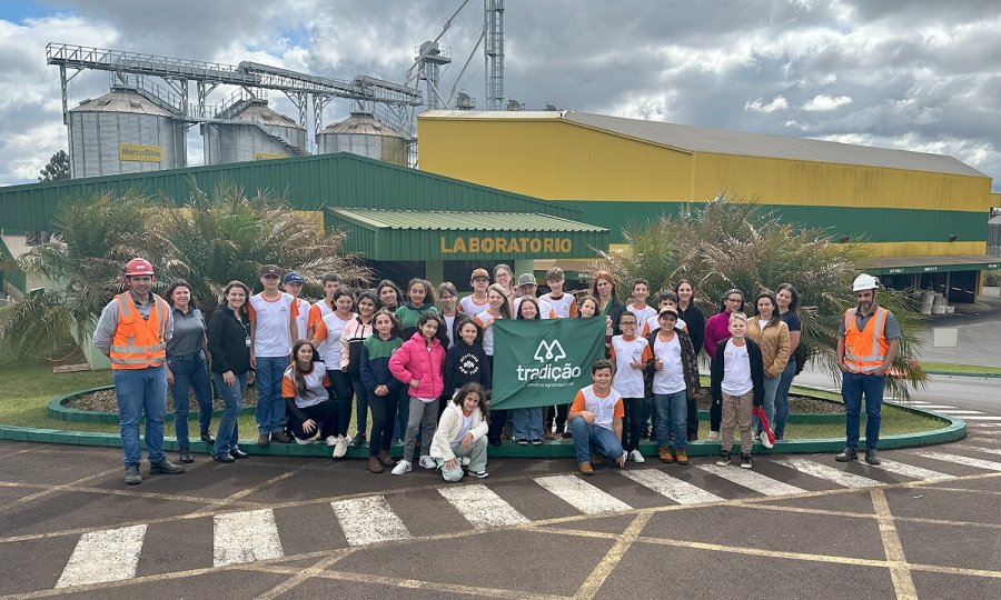 A visita começou na Matriz da Cooperativa, onde os alunos conheceram a história e os princípios que marcaram a fundação da Tradição. Em seguida, o grupo percorreu o complexo industrial, passando pela Unidade de Beneficiamento de Sementes (UBS), Centro de Distribuição de Sementes (CDS), Centro de Distribuição Interna (CDI) e Centro de Distribuição de Agroquímicos (CDA). O tour foi finalizado na obra de construção da nova Indústria de Óleo e Farelo de Soja, um dos mais recentes investimentos da cooperativa.
