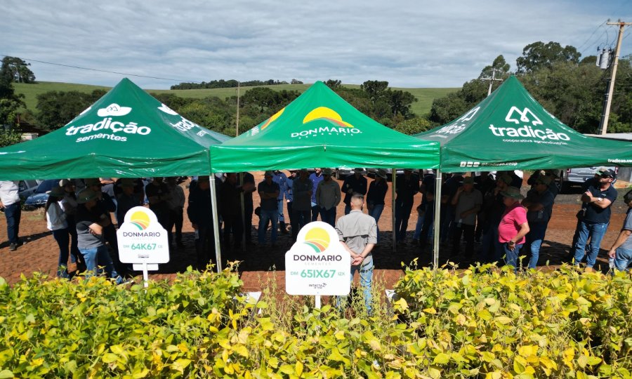 A Cooperativa Agroindustrial Tradição promoveu, em parceria com a Tradição Sementes e a DonMario, um evento técnico em área de multiplicação da cultivar DM 65i67 i2X, reunindo produtores rurais e equipe técnica da cooperativa para acompanhar de perto o desempenho da variedade no ciclo da safrinha.