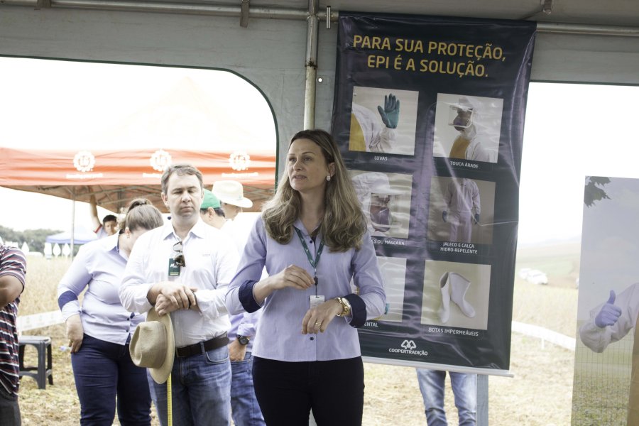 Além das informações acerca das cultivares, a Sementes Coopertradição também abordou o tema Segurança, no qual a Coordenadora do SESMT da cooperativa, Andressa Zanrosso, explanou sobre a importância da correta utilização e lavagem dos Equipamentos de Proteção Individual - EPIs, visando "garantir o bem-estar do agricultor e de toda sua família", comenta.
