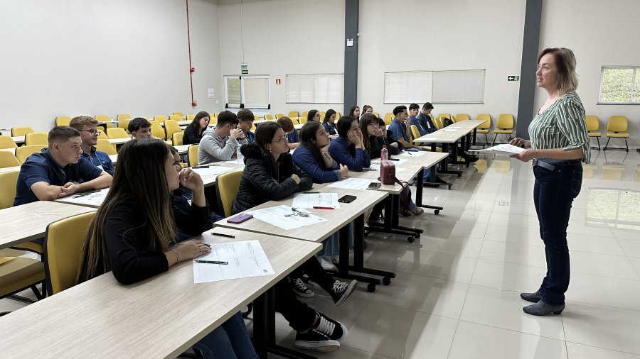 A jovem aprendiz, Emanuele Lange, está na Coopertradição há sete meses. Ela atua na Unidade de Beneficiamento de Sementes (UBS), em Pato Branco. Para ela, o Workshop de Aprendizagem foi uma oportunidade para refletir sobre o seu futuro profissional.