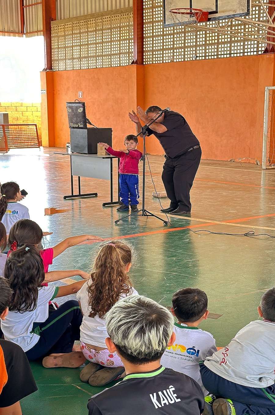 Foi um momento encantador, que deixou as crianças admiradas. Kaian Pereira, de 9 anos, é aluno da Fundabem de Pato Branco, e nunca tinha assistido a um show de mágica, ele ficou impressionado com os truques.