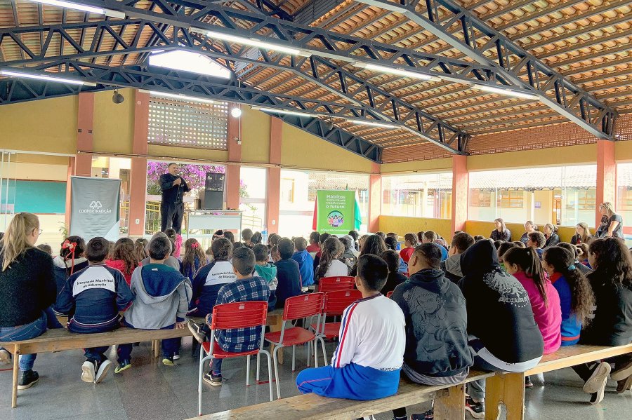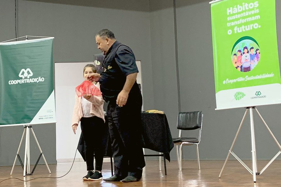 Além das mágicas, a ação em comemoração ao Junho Verde, promovida pela Coopertradição, entregou à cada escola um material educativo, no formato de cartilha, com diversas atividades que ensinam as crianças sobre a importância da separação do lixo, da reciclagem, do consumo consciente de energia elétrica e água e hábitos que podem ser adotados em casa, para economizar energia elétrica e água.