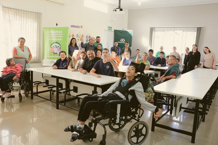 Além das escolas municipais, a Coopertradição levou o show até os alunos da Apae. Eu vejo que a Coopertradição tem um olhar diferenciado para as nossas escolas. Nós que atendemos alunos especiais, que têm diversas deficiências, esse olhar para a Apae é especial e nós agradecemos imensamente a Coopertradição por esse trabalho, ressaltou a diretora da Apae de Renascença, Francieli Longo Brizola.