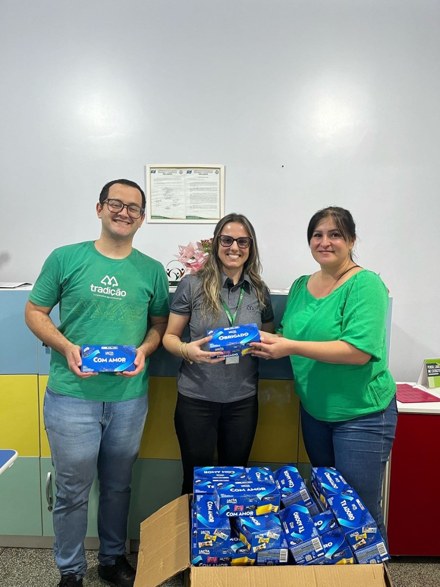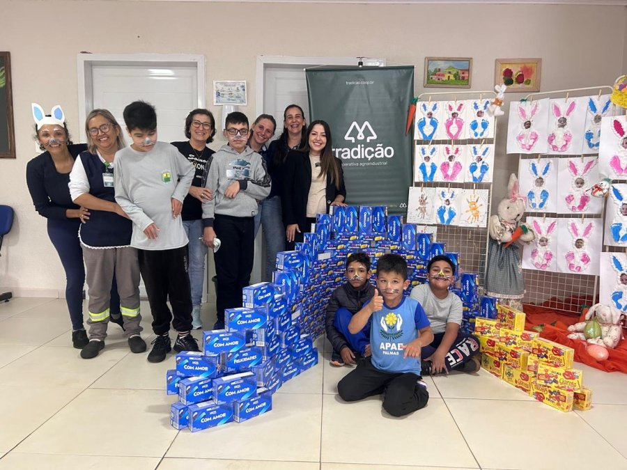A Cooperativa Agroindustrial Tradição realizou mais uma edição da campanha Páscoa Solidária Tradição, mobilizando colaboradores de todas as unidades de negócios e ampliando o impacto social por meio da participação de cooperados, parceiros e comunidade em geral. Nesta edição, a cooperativa adotou a estratégia de doação duplicada, para cada caixa de bombom arrecadada, a cooperativa doou outra, dobrando o número de contribuições e garantindo o atendimento a um maior número de pessoas e instituições beneficentes.