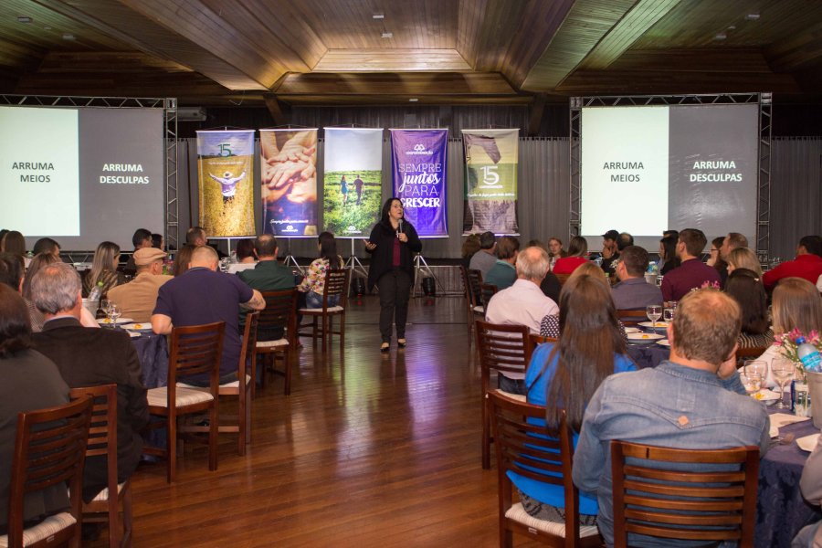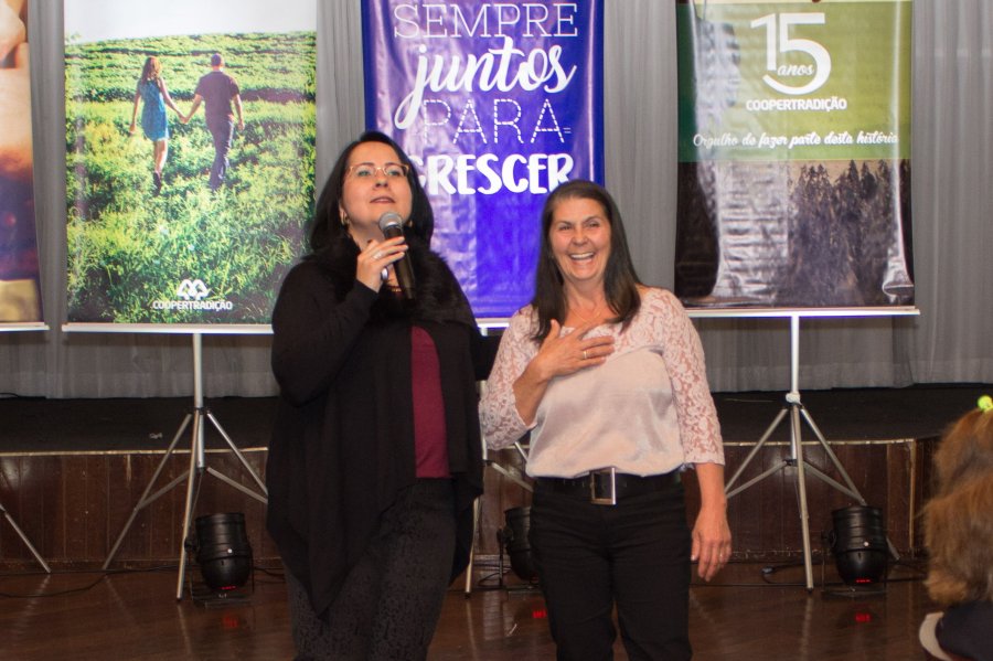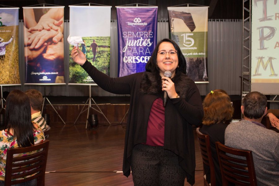 O evento iniciou com uma palestra sobre A Arte da Boa Convivência, que abordou fatos sobre o convívio familiar, mais especificamente do casal, e foi ministrada pela sempre animada, Helda Elaine, que já é figura conhecida de muitas cooperadas. Para a cooperada Ana Paula Vilela, de Palma Sola É sempre um prazer assistir as palestras da Helda. A linguagem é clara e humana, que chega de forma fácil à nossa vida, nos ajudando a sermos cada vez melhores. E estes eventos são muito importantes para nós agricultores, pois também precisamos de momentos de lazer e estas palestras fazem muito bem para nos motivar e sair um pouco da rotina diária que às vezes é tão cansativa.