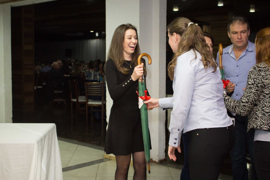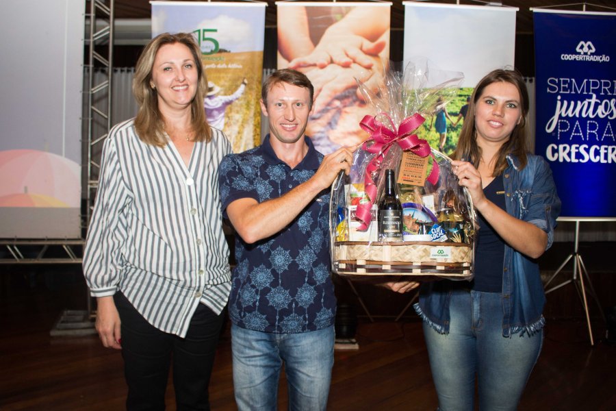 Logo após a palestra foi servido um delicioso jantar, e em seguida realizado o sorteio de uma cesta especial, entregue ao casal Atanásio Kwasnei e Letícia de Oliveira, cooperados da unidade de Candói, um dos entrepostos da Coopertradição recentemente inaugurados. Na despedida, todos os casais puderam levar para casa um lindo guarda-chuva, o qual simboliza a união e nos traz a mensagem que as tempestades devem ser atravessadas juntas, para que possamos ir muito mais longe.