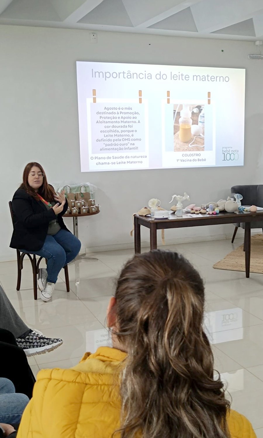 A colaboradora Priscila Haccourt, analista financeiro da Tradição, compartilhou como a iniciativa foi importante em sua experiência de maternidade. Participar da palestra sobre o Agosto Dourado foi uma experiência muito especial para mim, pois como mãe de primeira viagem, tenho muitas dúvidas e inseguranças, destacou.