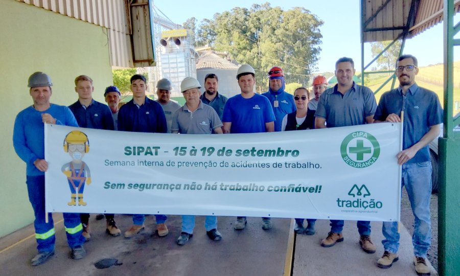 Entre os dias 15 e 19 de setembro, a Cooperativa Agroindustrial Tradição realizou a Semana Interna de Prevenção de Acidentes do Trabalho (Sipat) em todas as suas unidades. Mais de 800 colaboradores participaram de atividades voltadas ao cuidado diário no ambiente laboral, reforçando que a segurança começa com pequenas atitudes.