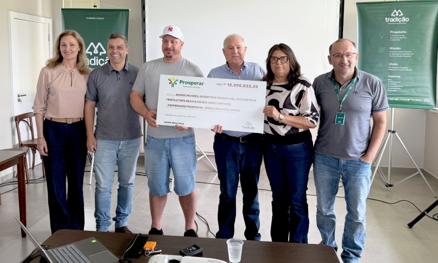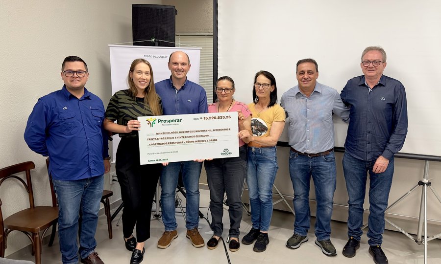 O cooperado de Mangueirinha, Euclesio Debortolli, destacou durante a reunião em sua unidade as vantagens de manter um relacionamento próximo com a Tradição e participar do Prosperar. Segundo ele, os benefícios chegam em um momento estratégico. As vantagens adicionais do Prosperar chegam no fim do ano, quando muitas vezes o produtor precisa de reforço de caixa, e esse retorno faz toda a diferença, trazendo tranquilidade.