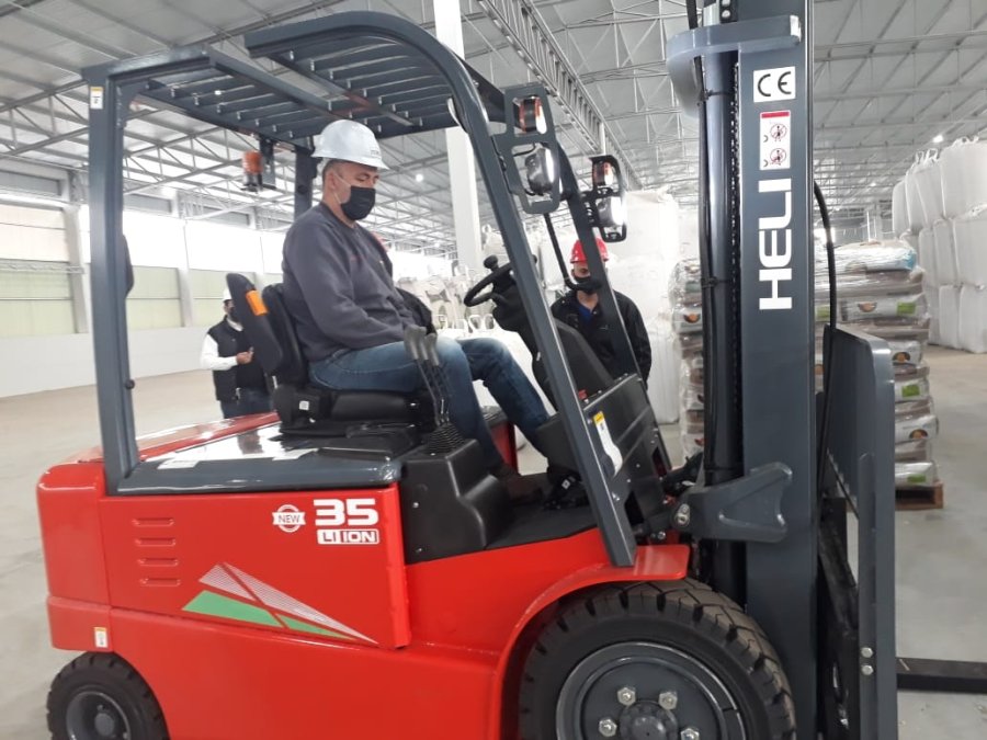 Após pesquisa de mercado e investimento total de mais de R$1 milhão, a Coopertradição adquiriu cinco empilhadeiras elétricas, sendo três delas com bateria de chumbo, que leva 8 horas para carregar e duas de lítio, 2 horas de carregamento. Como o próprio nome já diz, elas funcionam por meio de um motor elétrico, que é alimentado por uma bateria.